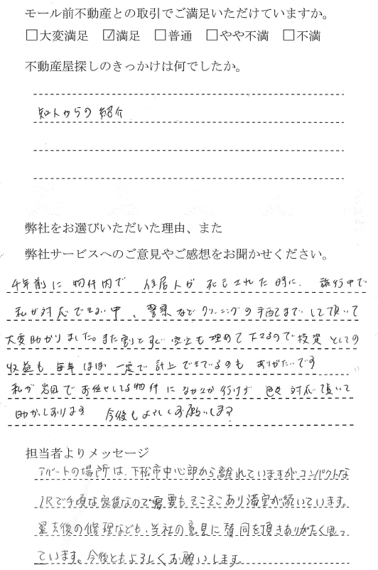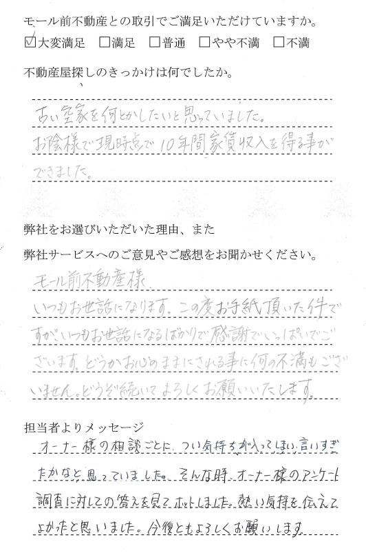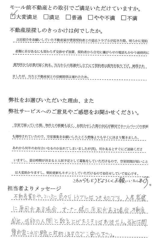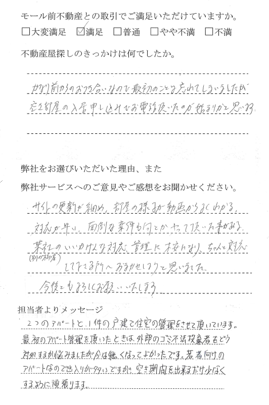 入居後の管理が丁寧で、満足しています。 |