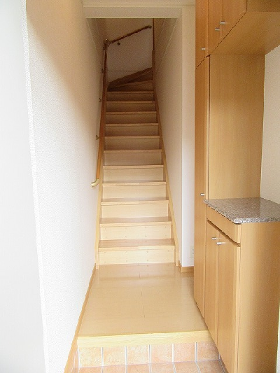 セキュリティキー、専用階段・階段下収納・防振フローリング、24時間換気、家具家電レンタル利用可、プロパンガス