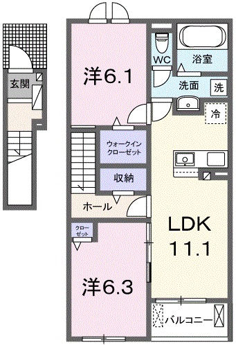 | 間取り:202/2LDK(58.57㎡) |